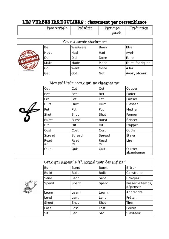 Verbes irréguliers (ceux qui aiment le "T")
