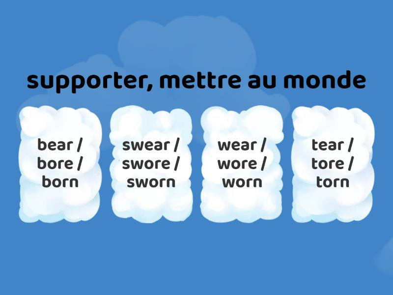 QUIZ Verbes irréguliers (les EAR, ORE, ORN)